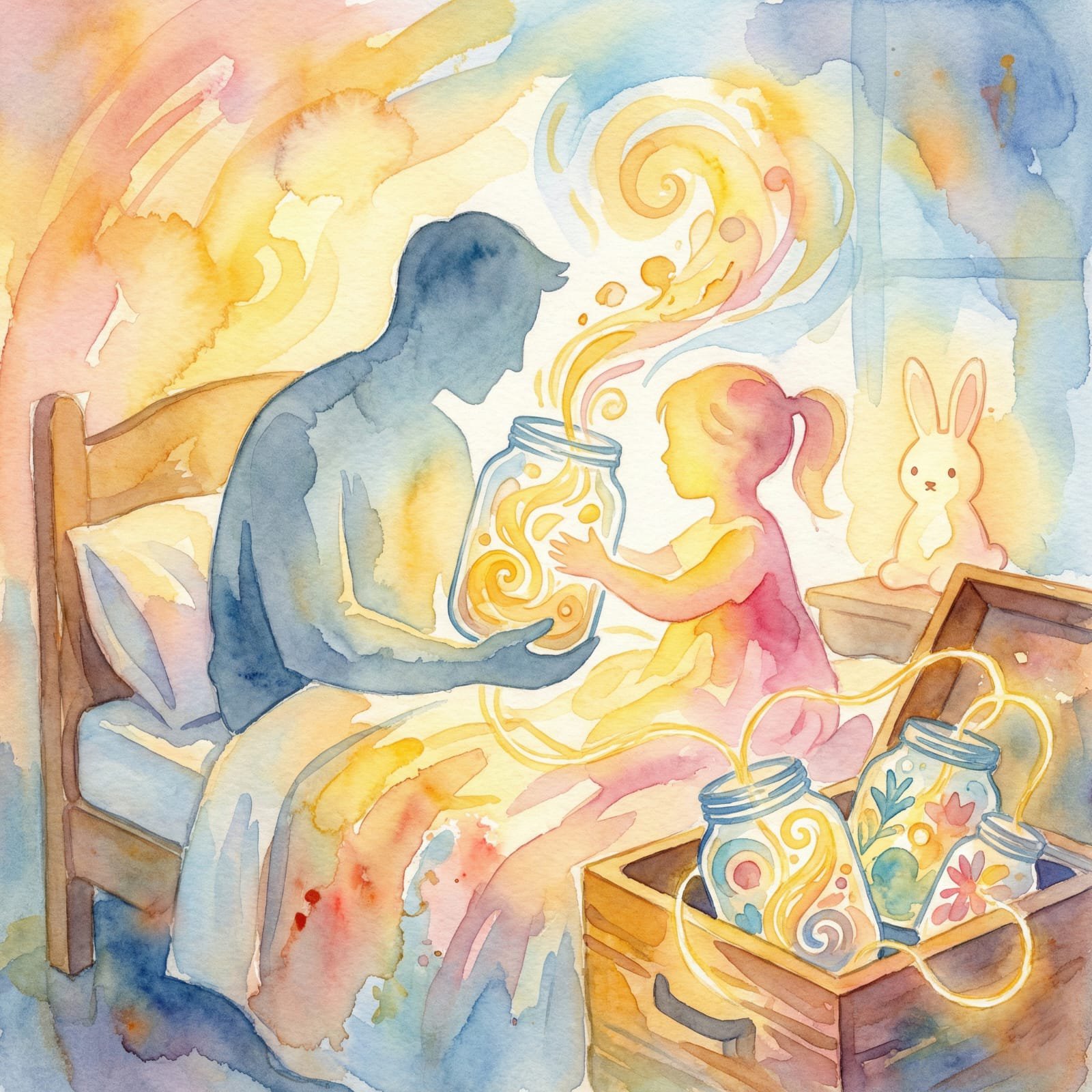 Randi sering membuka lemari besar di kamarnya hanya untuk menatap kotak kayu yang menyimpan botol-botol itu. Ia membayangkan tiap botol berisi ciuman Gita yang hangat penuh kasih, yang tak terlihat tapi nyata. Kadang ia mendekatkan telinga, berharap mendengar gema tawa anaknya di dalamnya. Dan entah bagaimana, ia merasa betul-betul mendengarnya.