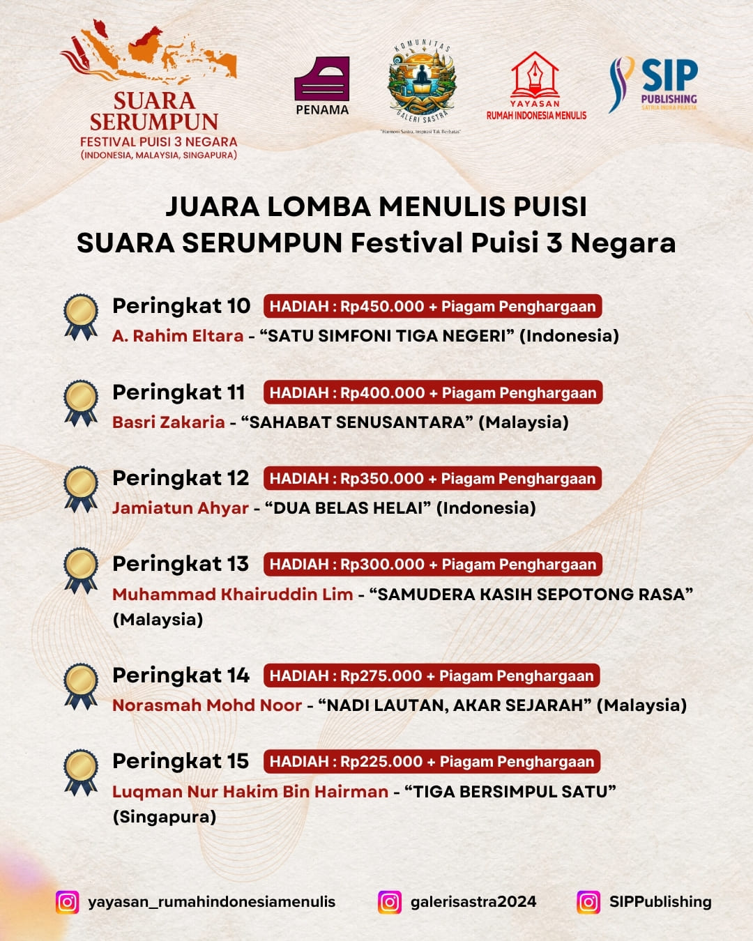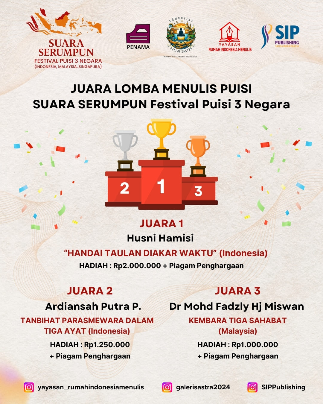 Pengumuman 15 Terbaik Suara Serumpun: Festival Puisi 3 Negara