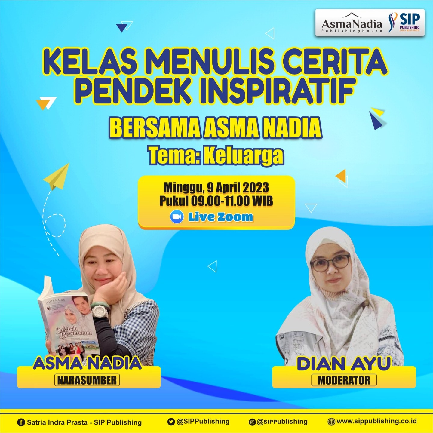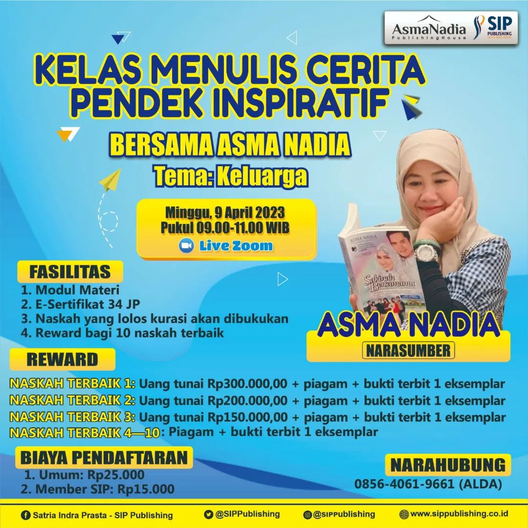 SIP Publishing akan mengadakan kelas menulis bersama Asma Nadia pada tanggal 9 April 2023