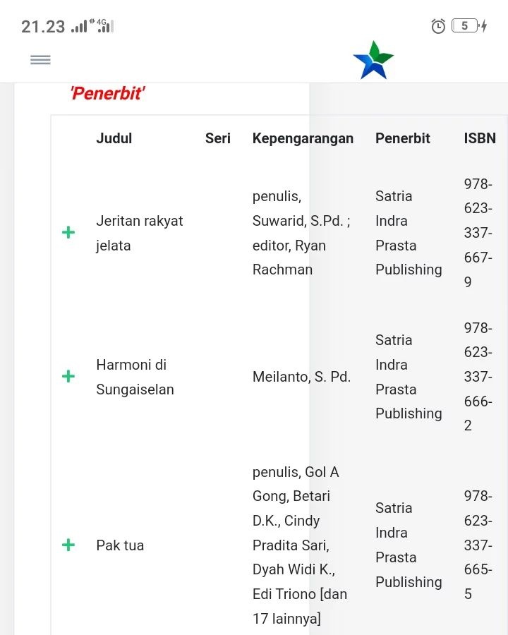 Alhamdulillah Proses ISBN Tetap Lancar Post Author:admin Post published:27/05/2022 Post Category:Buku Terbitan SIP / Info Terbaru Post Comments:0 Comments Alhamdulillah hari ini ada 14 ISBN yang keluar ISBN tetap lancar di tempat kami Read more articles Previous PostKelas Self Editing Angkatan 3Next PostBedah Buku Bonokeling You Might Also Like Hari ke-2 Safari Literasi di Kabupaten Cilacap 27/01/2022 Katalog April 2020 24/07/2020 Kelas Menulis Dongeng Fabel bersama Mulasih Tary Angkatan 5 04/01/2025 Leave a Reply Cancel replyCommentEnter your name or username Enter your email Enter your website URL (optional)