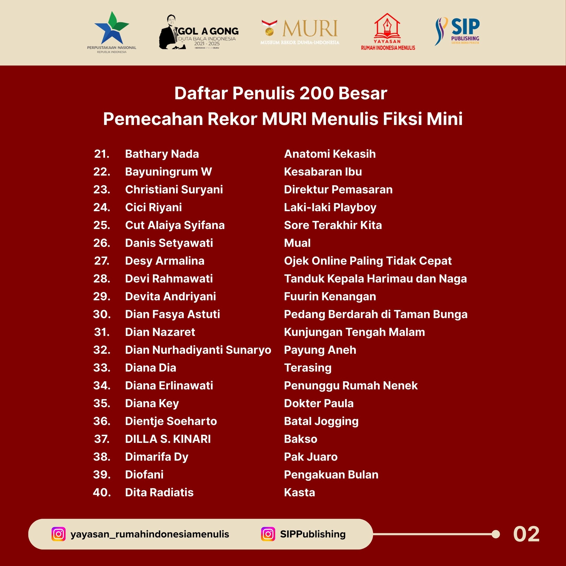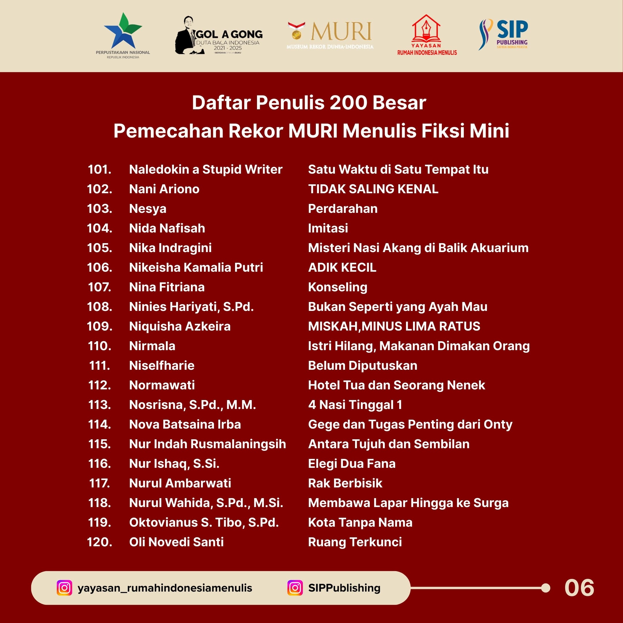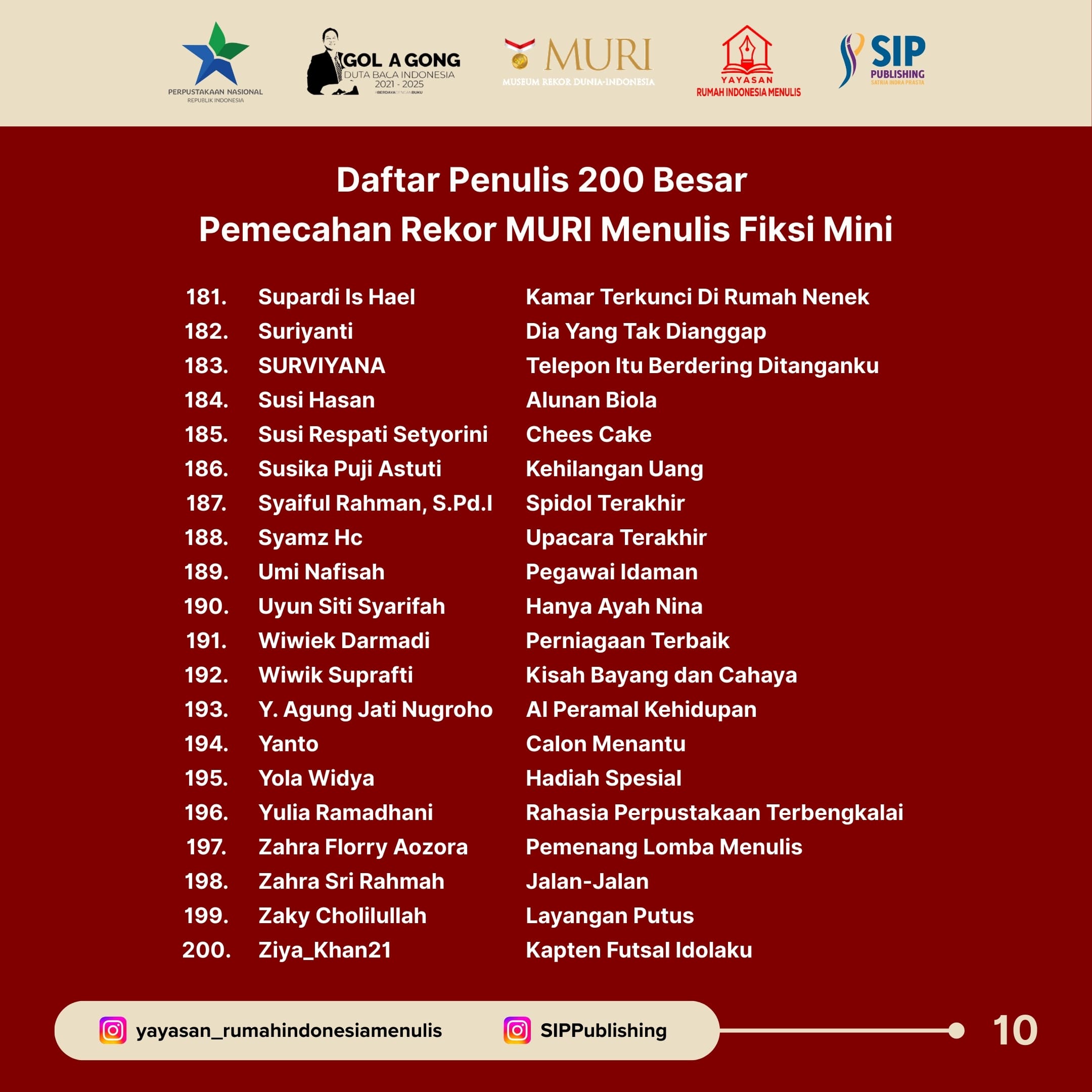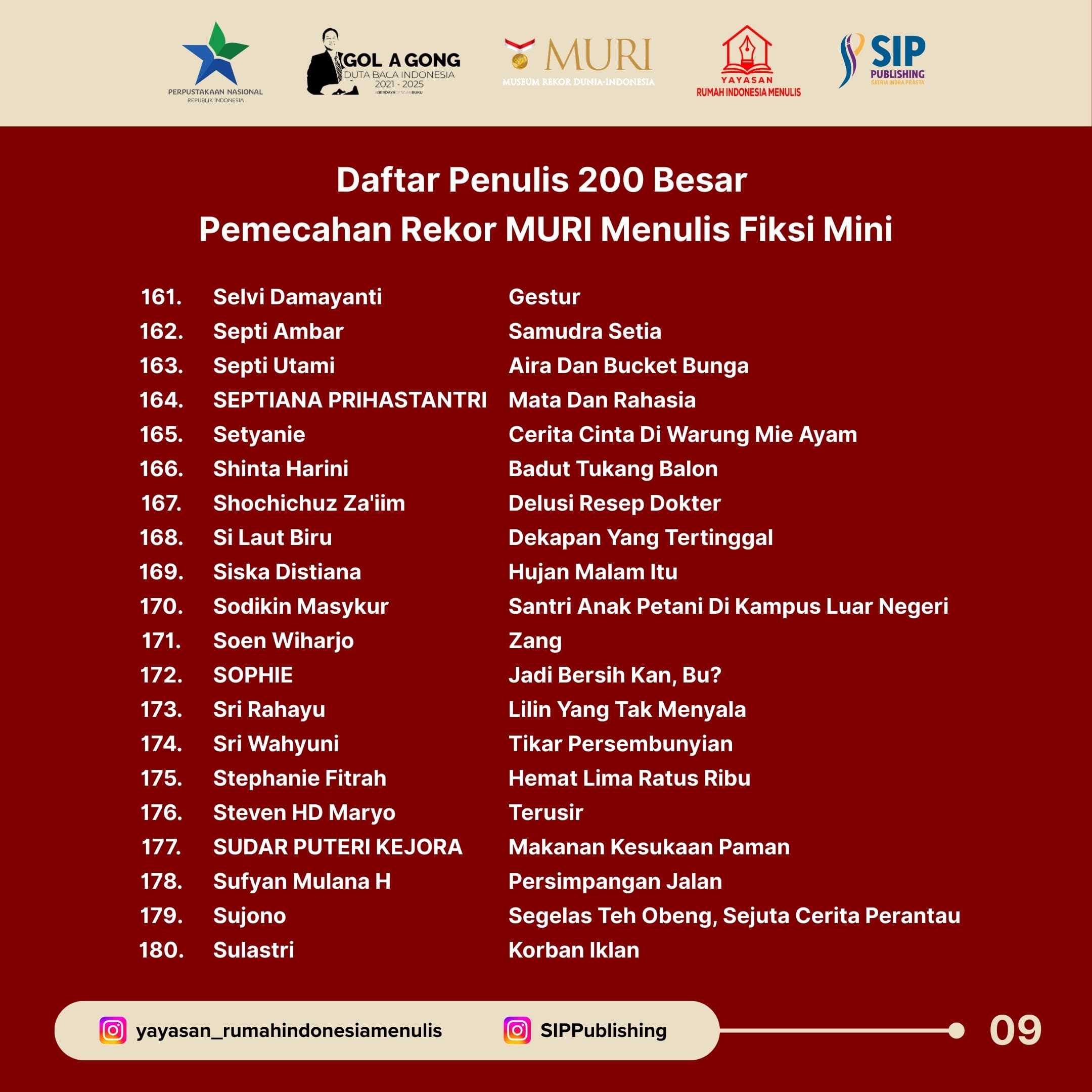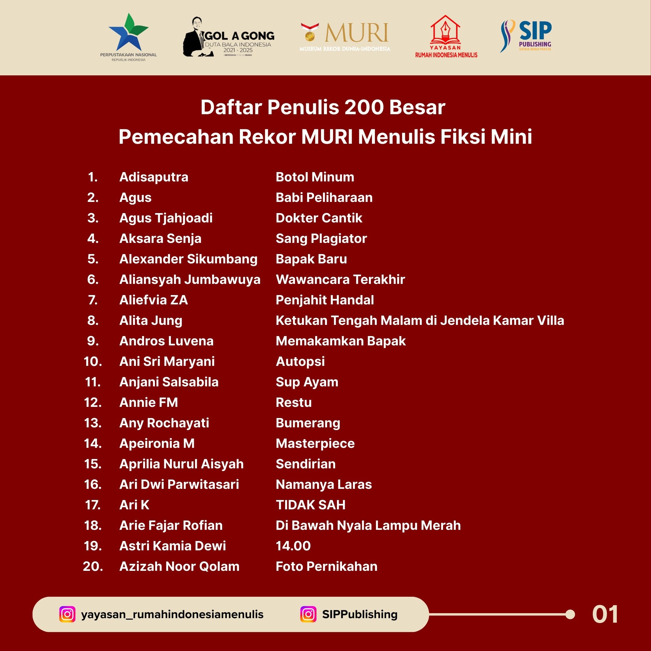 Daftar Penulis 200 Besar Pemecahan Rekor MURI Menulis Fiksi Mini