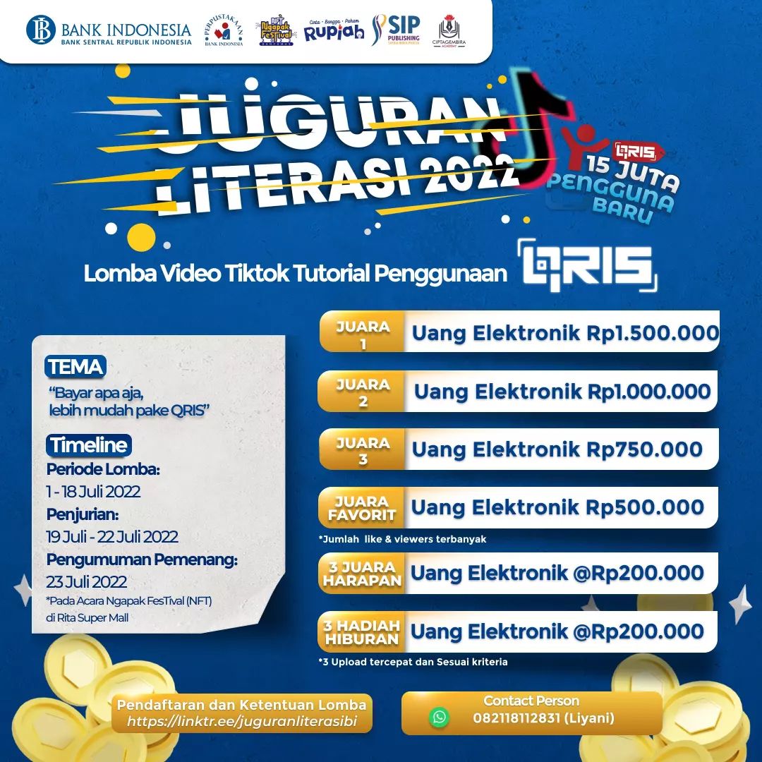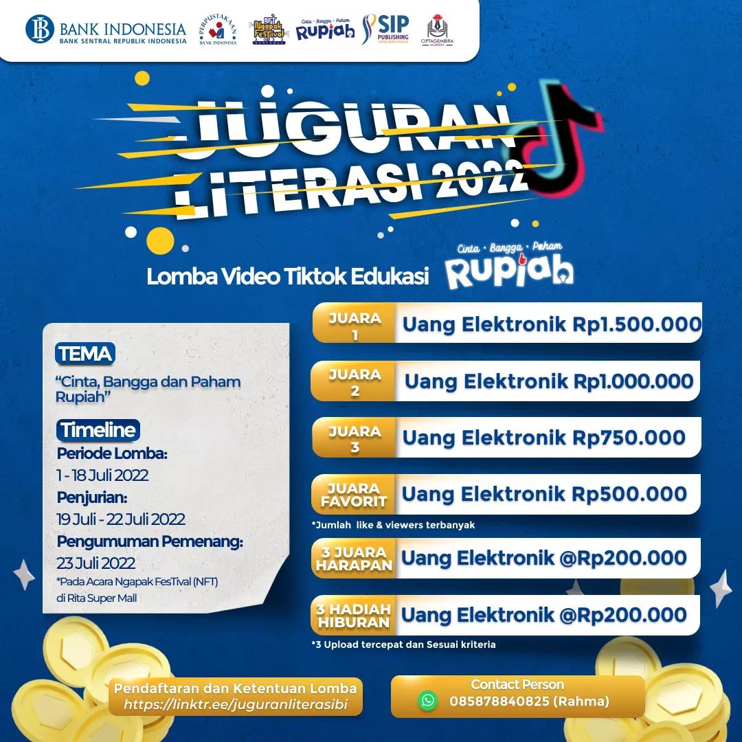 @bank_indonesia_purwokerto bekerjasama dengan @ciptagembiraacademy_official dan @sippublishing akan mengadakan lomba video tiktok