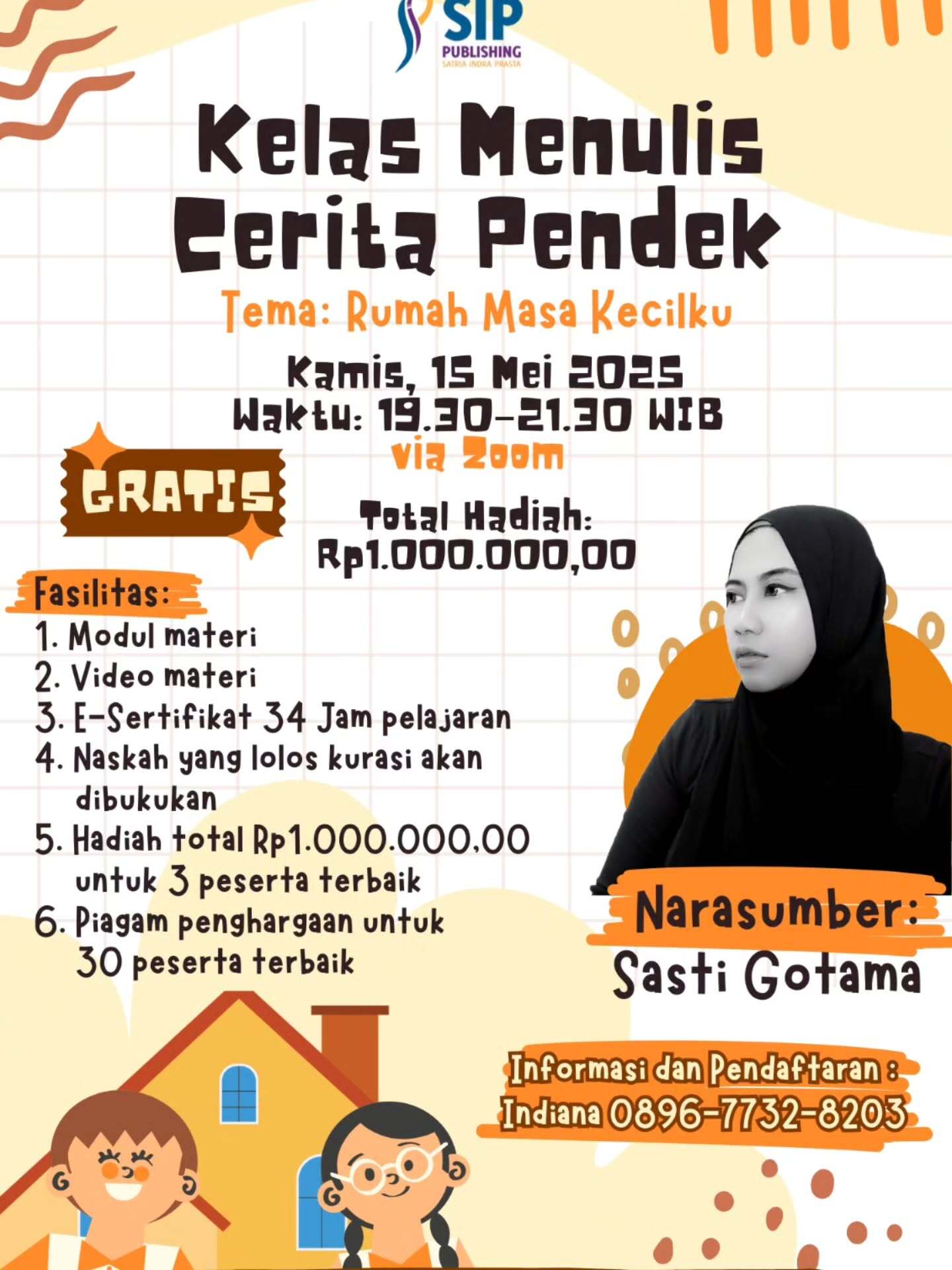 Ikuti Kelas Menulis Cerita Pendek bersama penulis cerpenis, Sasti Gotama.