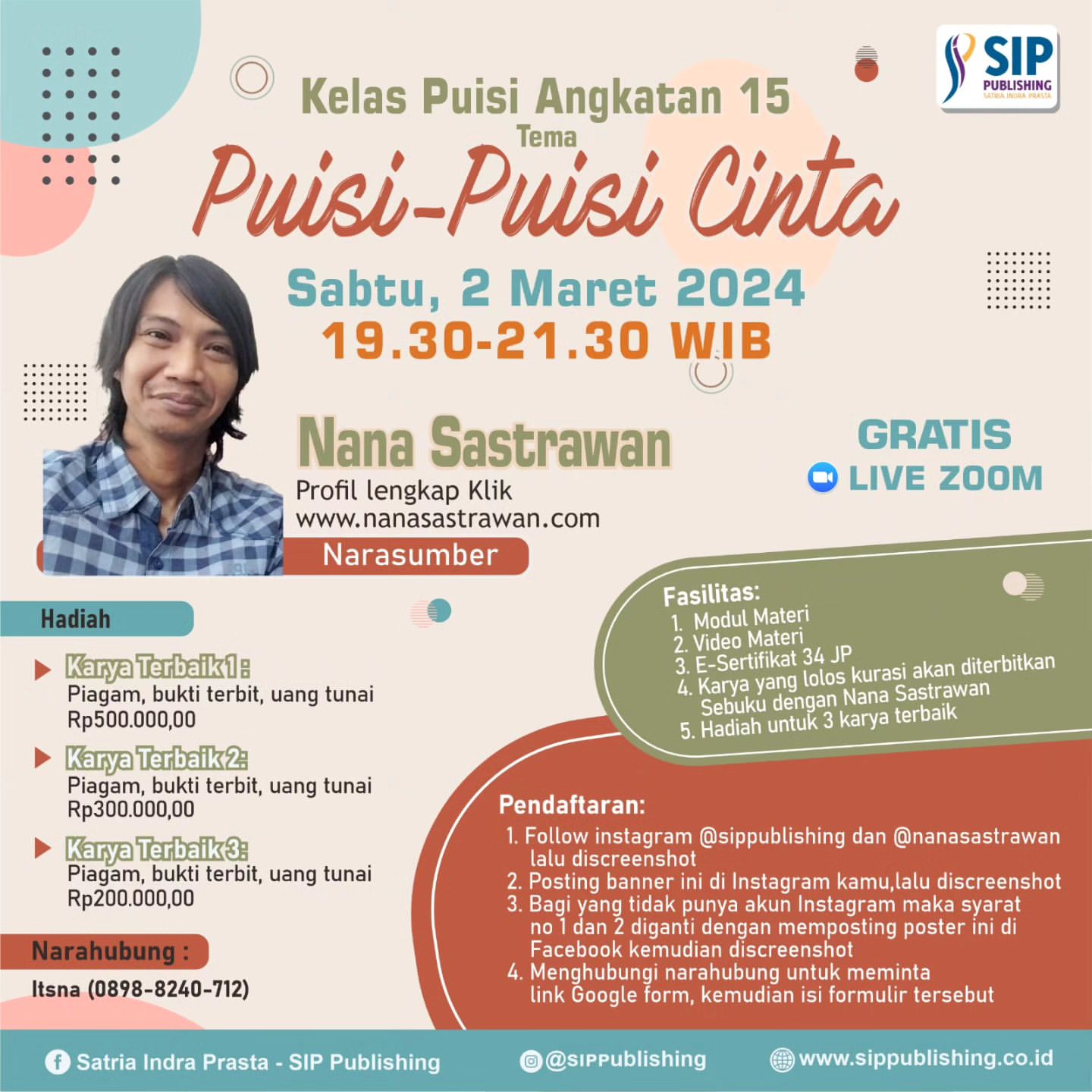 4. Karya yang lolos kurasi akan diterbitkan sebuku dengan Nana Sastrawan