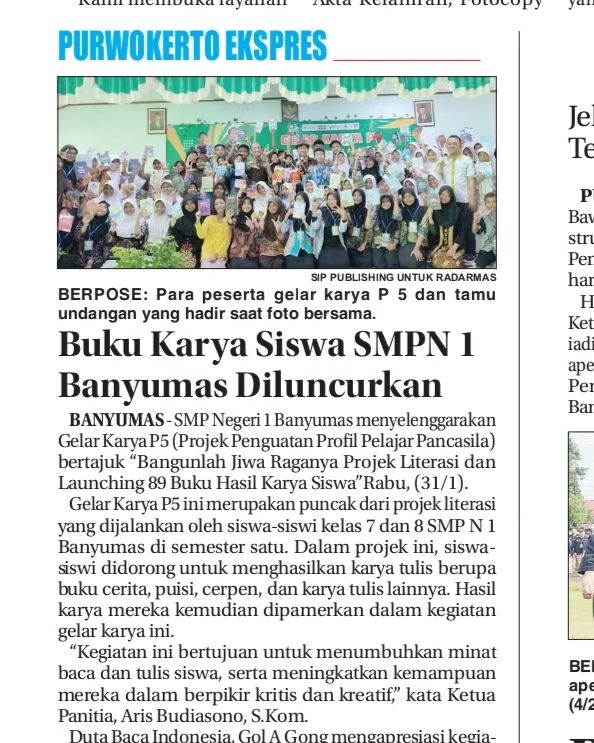 Liputan Media Peluncuran 89 Buku Karya Siswa SMPN 1 Banyumas Post Author:admin Post published:05/02/2024 Post Category:Info Terbaru / Liputan Media Post Comments:0 Comments Terima kasih Radar Banyumas Selengkapnya silakan baca di https://radarbanyumas.disway.id/read/95334/89-judul-buku-karya-siswa-smp-n-1-banyumas-terbitan-sip-publishing-diluncurkan-duta-baca-indonesia Read more articles Previous PostRuang LiteraSIP EdisiĀ #56Next PostOngkos Pemenang Dari Rumah ke Jakarta PP Ditanggung Panitia You Might Also Like Editor SIP Kak Rey Berulang Tahun 20/07/2020 Katalog SIP Publishing Juli 2023 31/08/2023 Selamat Tahun Baru Islam 1 Muharram 1445 H 19/07/2023 Leave a Reply Cancel replyCommentEnter your name or username Enter your email Enter your website URL (optional)