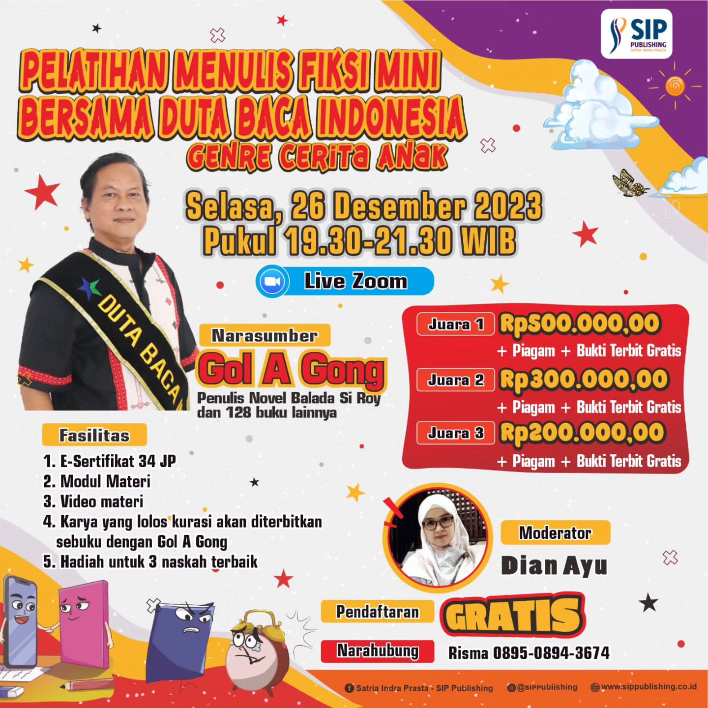 4. Karya yang lolos kurasi akan diterbitkan sebuku dengan Gol A Gong