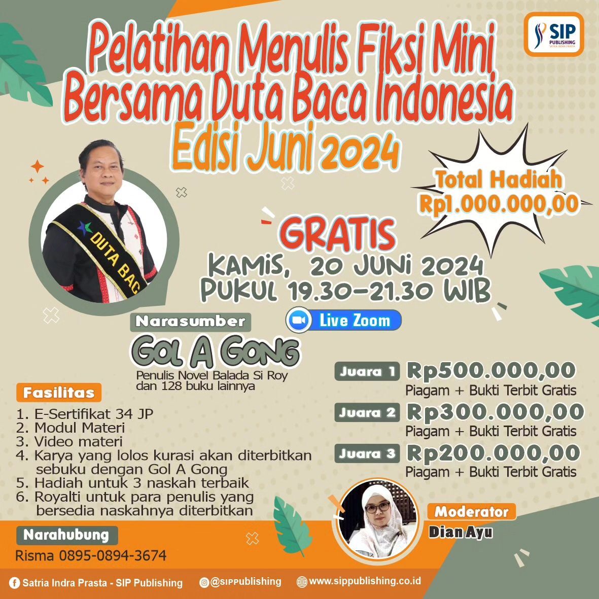 4. Karya yang lolos kurasi akan diterbitkan sebuku dengan Gol A Gong