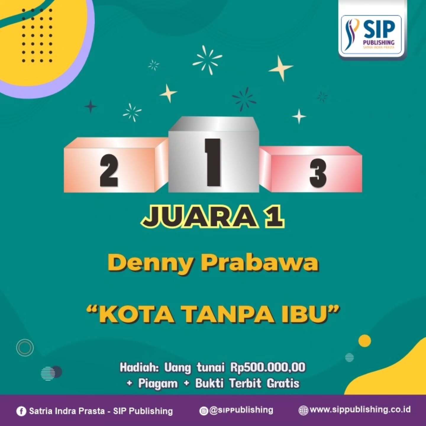 Pengumuman Pemenang Kelas Puisi Angkatan 23 Post Author:admin Post published:06/02/2025 Post Category:Info Terbaru / Kelas Menulis / Lomba Post Comments:0 Comments Kami ucapkan kepada penulis terbaik dalam Kelas Menulis Puisi Angkatan 23 Hadiah akan segera dikirim oleh panitia Bagi yang belum menang, silakan bisa ikuti kelas angkatan selanjutnya Sukses selalu Salam LiteraSIP Read more articles Previous PostKuota Tinggal 4 Kursi Untuk Travel Writing Singapore dan MalaysiaNext PostPengumuman Pemenang Kelas Menulis Cerita Anak Tema Ibu You Might Also Like Kelas Menulis Bersama Kak Tary di Bulan Juli 2021 17/07/2021 Ruang LiteraSIP Edisi #72 23/06/2024 SIP Publishing Luncurkan Buku “Matematika Praktis Aku Bisa” 21/12/2023 Leave a Reply Cancel replyCommentEnter your name or username Enter your email Enter your website URL (optional)